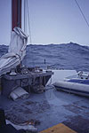 Deck als die Welle einschlug. Alle Sachen in der Küche sind aus den