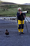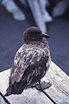 Eingang eine große subantarktische Skua (auf dem Bild rechts klein